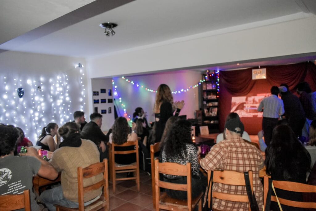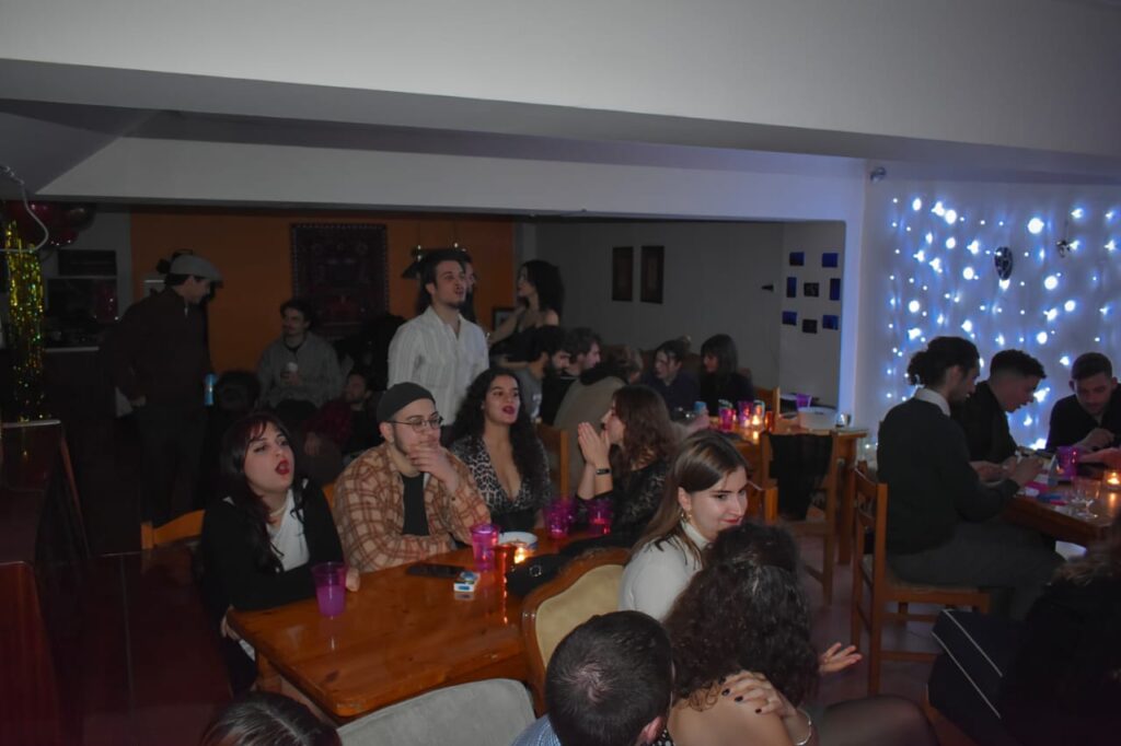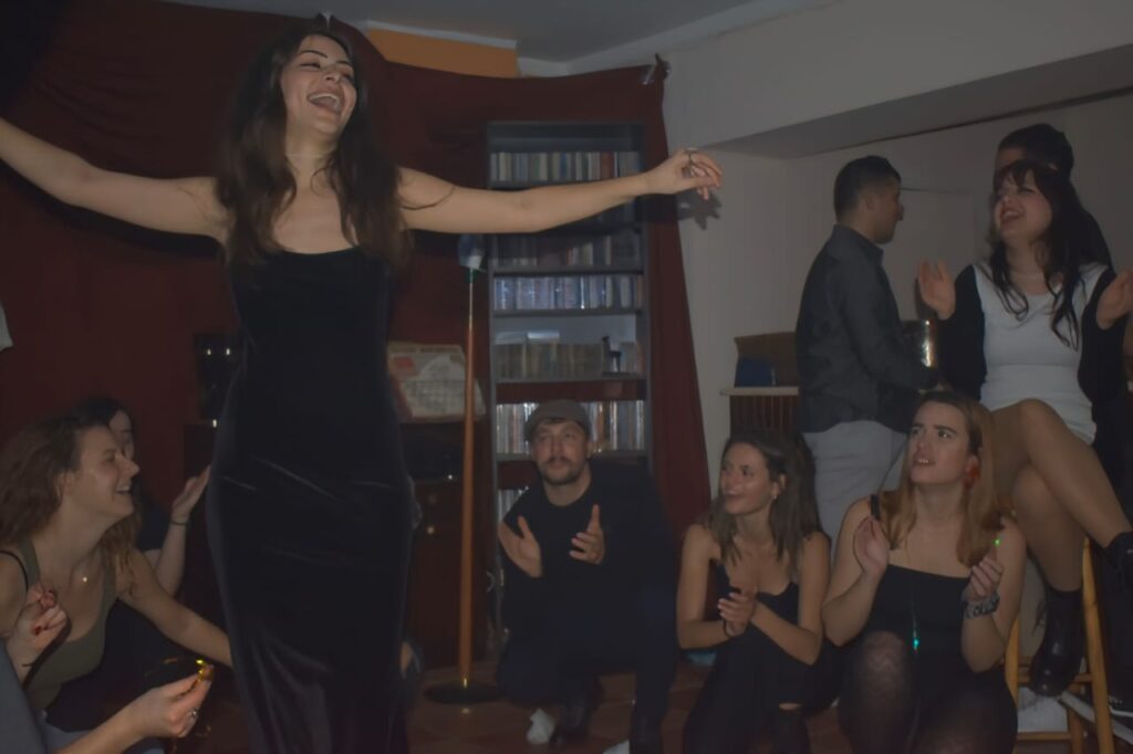Το πρώτο Projektaki έγινε στις 31/11/24 σε ένα υπόγειο στη Νέα Ιωνία. Ξεκινήσαμε καλώντας φίλους και φίλους φίλων σε μια βραδιά καραόκε με θέμα τον παλιό κινηματογράφο. Ο βασικός μας σκοπός; Να ανακοινώσουμε το πρότζεκτ μας και, φυσικά, να περάσουμε όμορφα, κάνοντας κάτι όχι και τόσο συνηθισμένο.